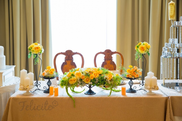 ブーケをはじめ「メインテーブルフラワー」、「ゲストテーブルフラワー」等のウエディングアレンジで“お二人の門出”をお手伝いさせていただいております。